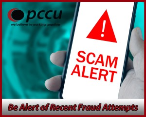 PCCU has had several reports of fraud from members, one of which involved a caller claiming to be part of PCCU’s Fraud Watch team. As a reminder, that no one at PCCU will ask you to initiate transactions, or to verify “trial transactions” to “test the system”. They will also never ask you for your whole Social Security Number over the phone.