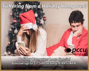 Did you overspend this holiday season?? Did you rack up debt on your high-interest credit card? PCCU is there for you with our Holiday Hangover Loan Special! Borrow up to $1,500 for only 9.99% APR, and take up to a year to pay it back.